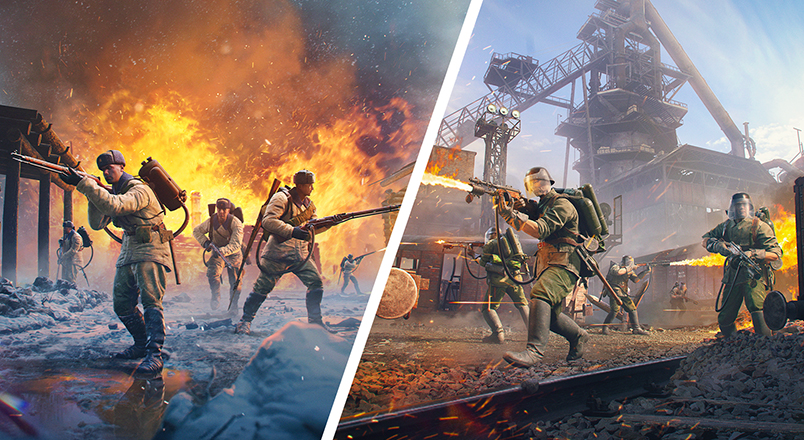 A premium squad consisting of four flamethrower soldiers and a level IV engineer. All soldiers are armed with Mosin M91 rifles equipped with a flamethrower.