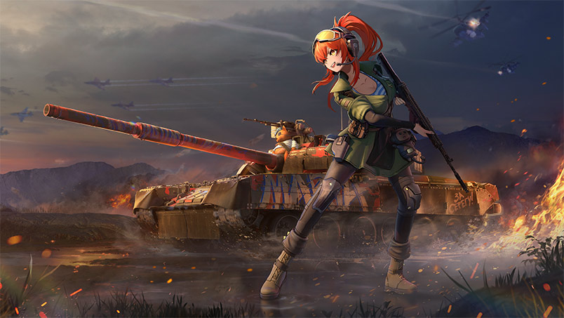 Free-spirited and bold, Maria is the untamed force of the Senrai Maidens! Inside her customized T-80U-E1, she becomes one with the primal elements — a storm of fire, smoke, and speed! When her tank surges forward, nothing can withstand the fury of this tempest! The T-80U-E1 is a modernization of the T-80BV, using the T-80UD turret. It underwent trials in the early 2000s before being approved for production in 2003. This modernized variant features an advanced second-generation thermal imager, and combined with its laser rangefinder and APFSDS rounds, the T-80U-E1 becomes a lethal long-range sniper. The camo netting helps here too, disguising the turret when hull down. You can also fight on the frontlines effectively thanks to the powerful 1250 hp engine and armor, complete with Kontakt-5 ERA blocks coating the hull and turret, which will often catch and defeat incoming projectiles. It has a 6.5 second autoloader and can also fire guided tandem-warhead missiles, ideal for helicopters or targets on the move. Highly effective in both defensive long-range engagements and aggressive close-range brawls, the T-80U-E1 excels thanks to its advanced electronics and thick armor.  |