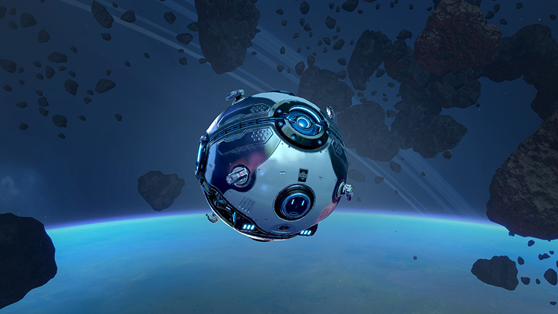 A spacecraft can be any shape since it’s away from any atmosphere, as long as it has enough propulsion and maneuvering engines. One of humanity’s favorite shapes is the sphere. Gabriel Hugot wanted to bring this shape to life. His company began designing a fighter created using extreme symmetry technology in 4623, and the development was kept secret for two years. He presented the “Apeiron” fighter to the public only when it was already finished. The main difficulty in development was creating complete symmetry in the ship’s systems. A separate challenge was creating the pilot’s cabin and overload compensation system, which was significantly more complex than that of the Object NY18. Rumour has it that Gabriel was able to obtain several samples of Precursor technology and his engineers were able to adapt it for the “Apeiron”. The gunship, developed under Hugot’s leadership, passed all tests equal in complexity to the Empire’s technical military trials. At the moment, the ships are made to order on a small scale. The UMC is one of the customer organizations.