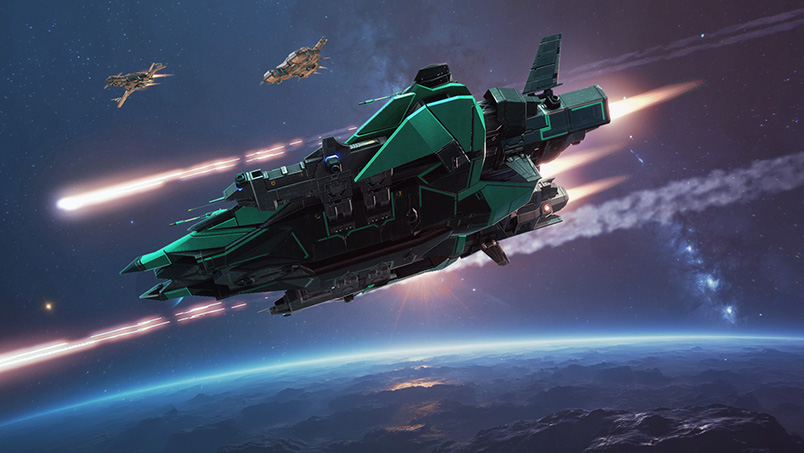 During the first war for the Bartle sector, Jericho sought to find an additional way to combat the emerging Empire’s scout ships and their advanced cloaking systems. Since all of Jericho’s low tonnage vessels lacked such a capability at the time, such a ship was sorely needed. However, due to the Empire’s counterattack, the project had to be suspended. Research was resumed shortly after the meeting between the Emperor and Bartle, as even a ship without the strongest firepower in the galaxy could prove useful in a battle against the Precursor spies. A unique missile system was developed specifically for the “Exorcist”. Within a short radius, it can disrupt the operation of cloaking systems of all known ships, as well as new developments in this area. In addition, the missile for this ship was supplemented with a non-standard system of maneuvering engines, significantly increasing its turning speed. This frigate is mass-produced for the Raid fleet as a mainline AI-controlled combat drone, but a few families have decided to sell small exclusive batches to the UMC.  |